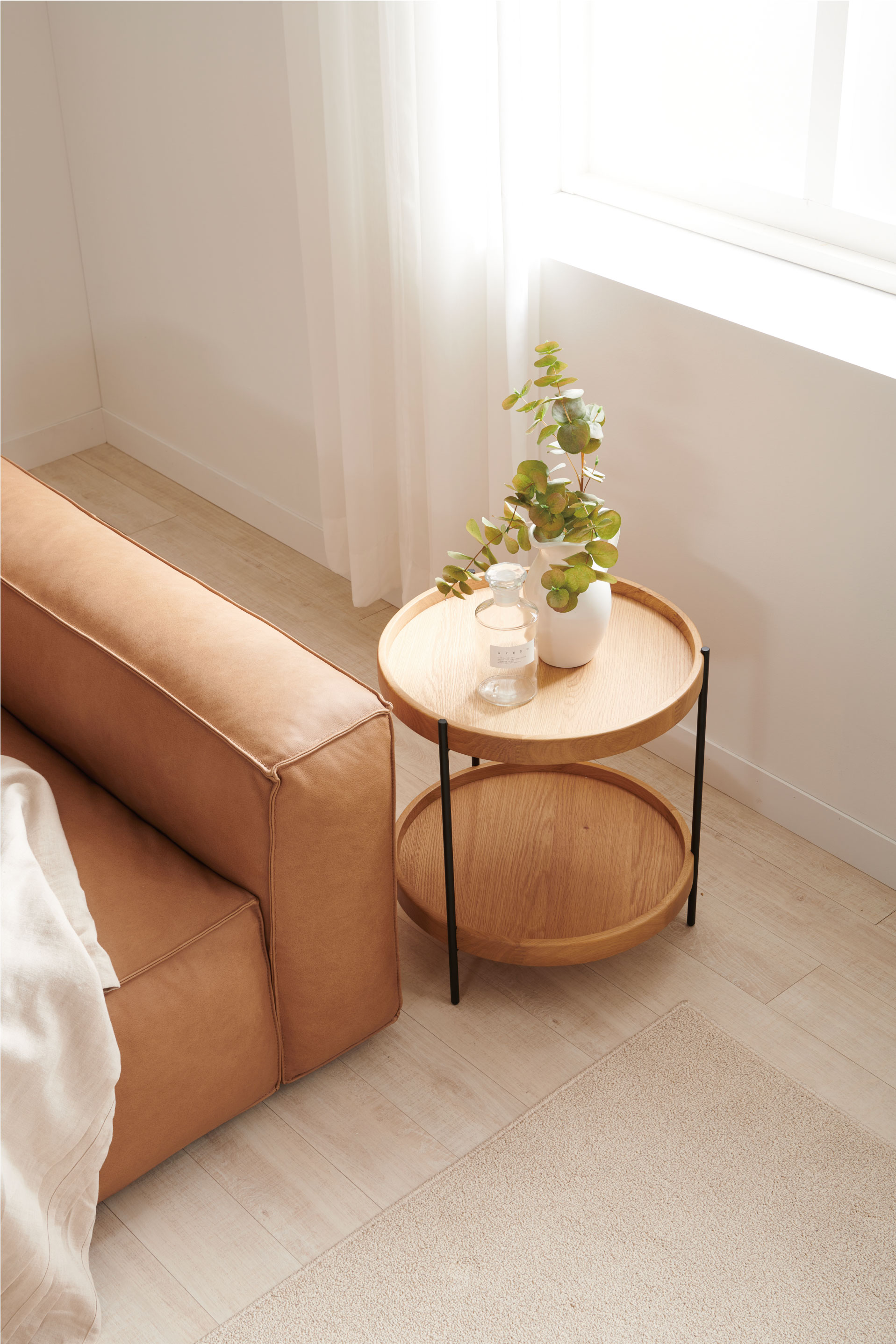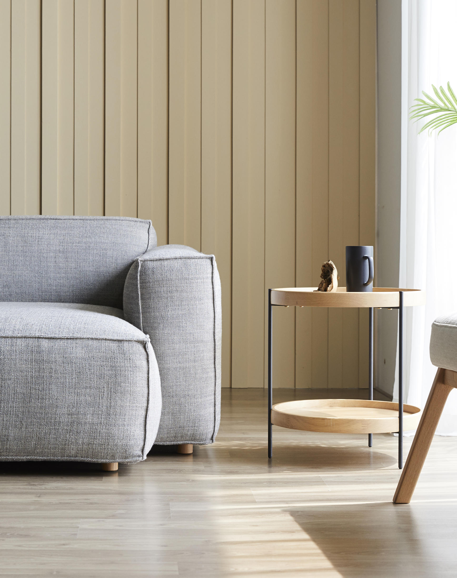 오크의 내추럴한 감성을 살리면서도 생활 스크래치와 오염에 강한 PU 코팅 마감.
