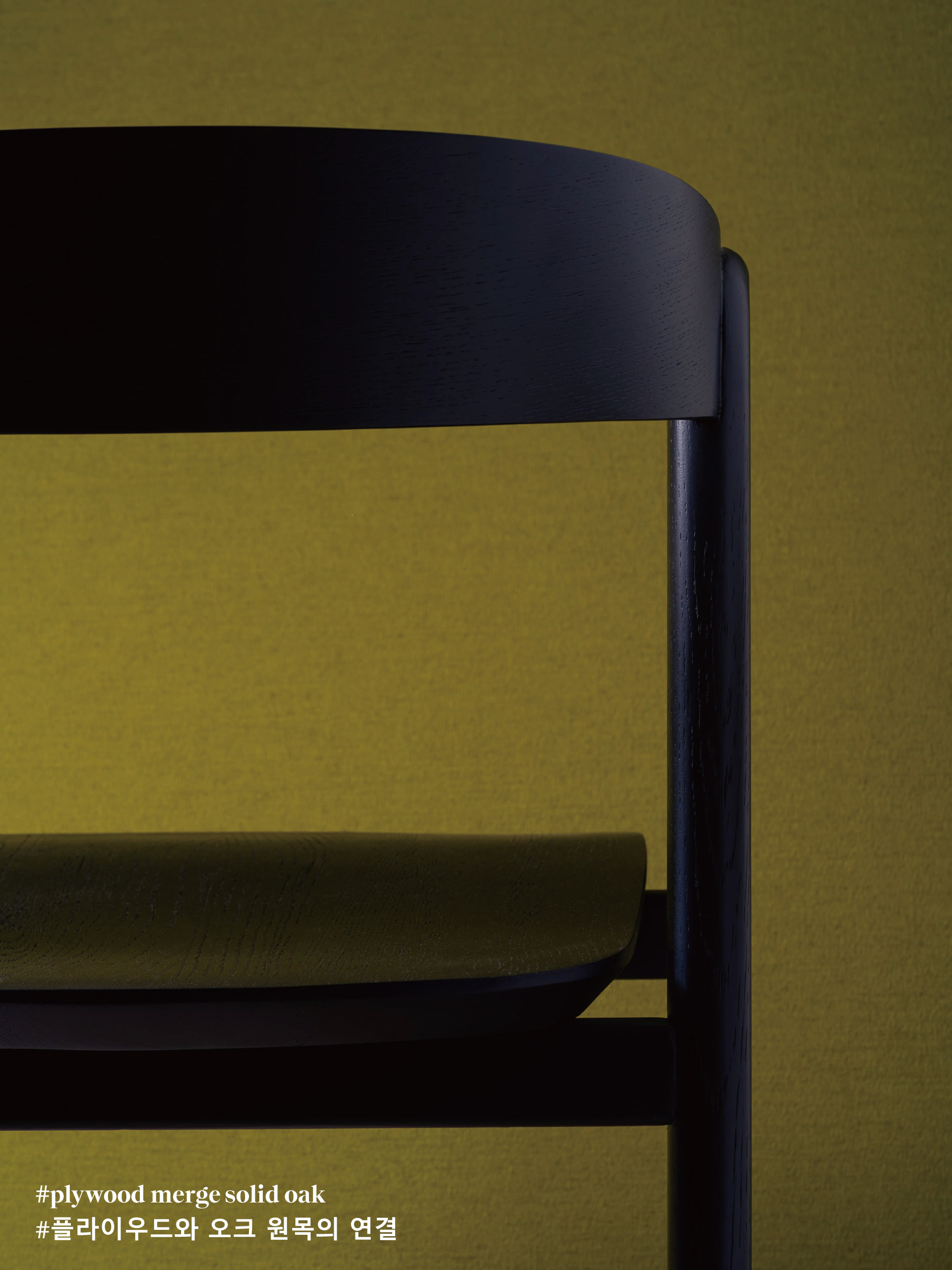 의자의 전체적인 디자인은 목재의 질감과 특성을 최대한 살려 제작되었습니다.