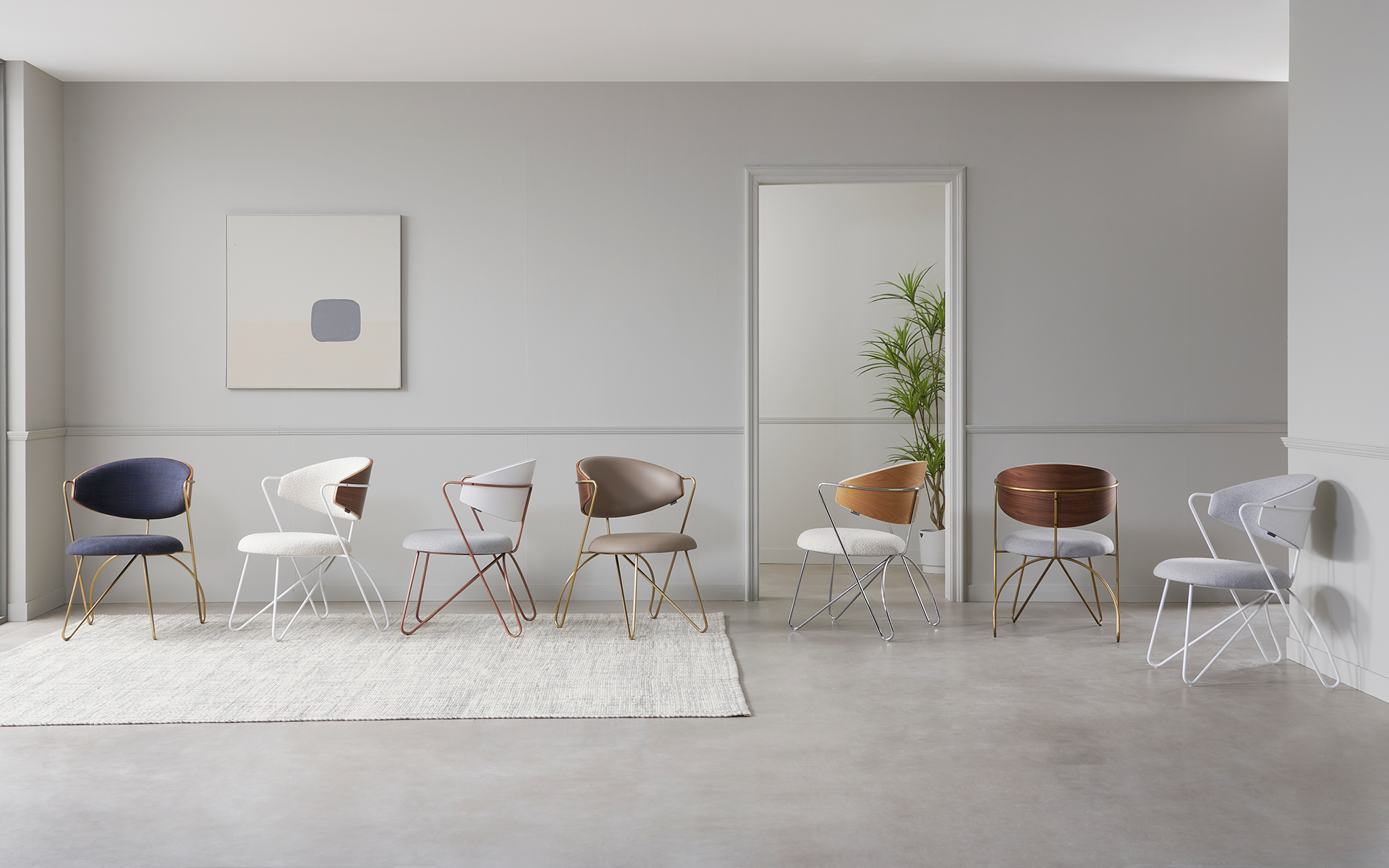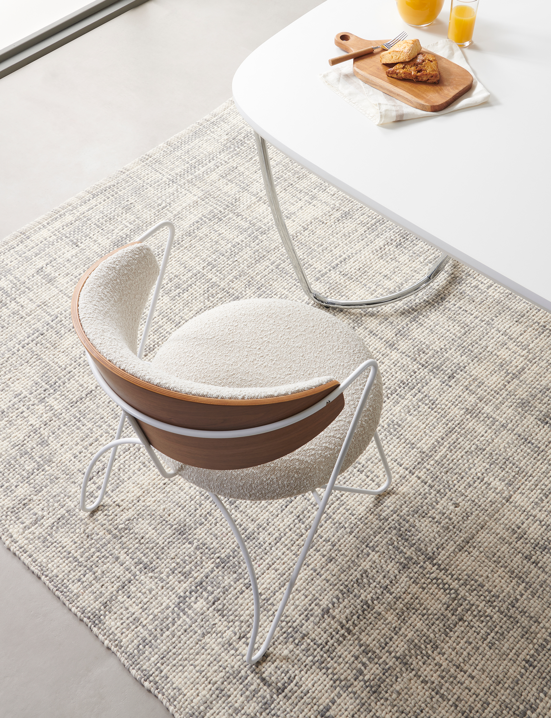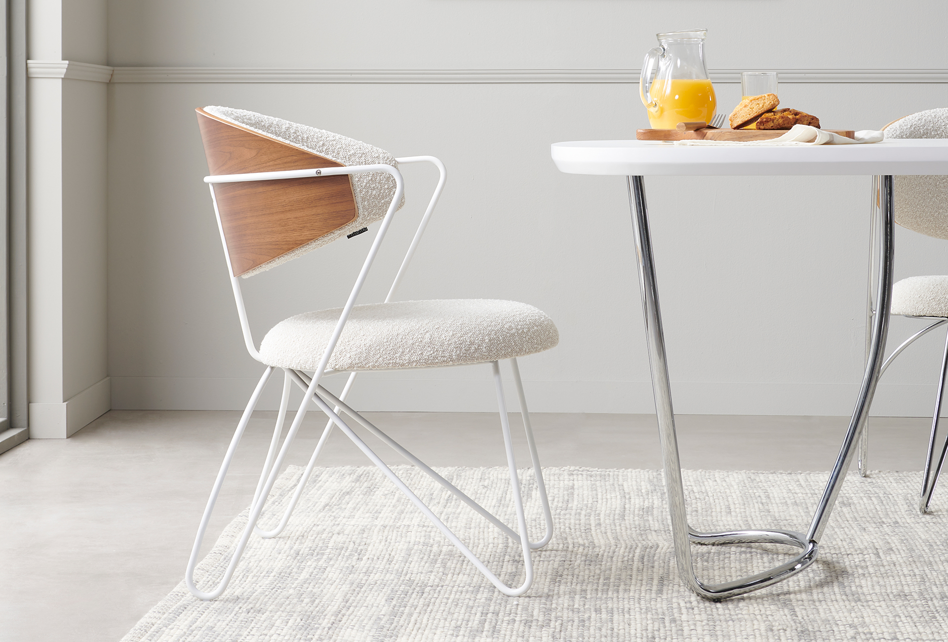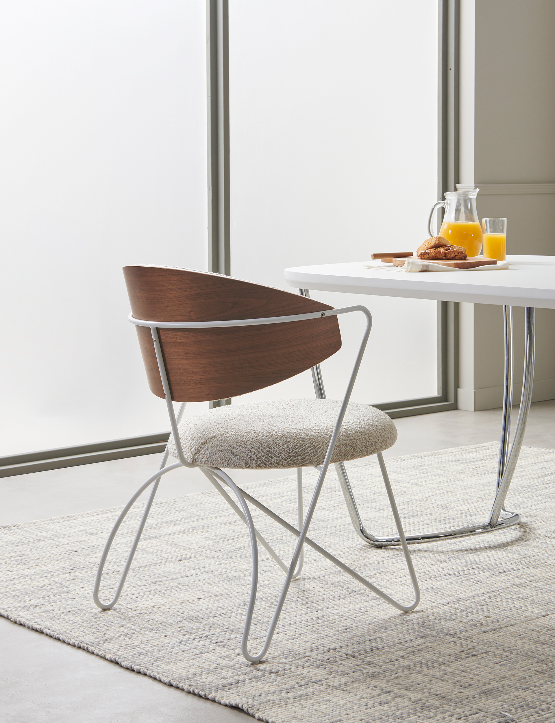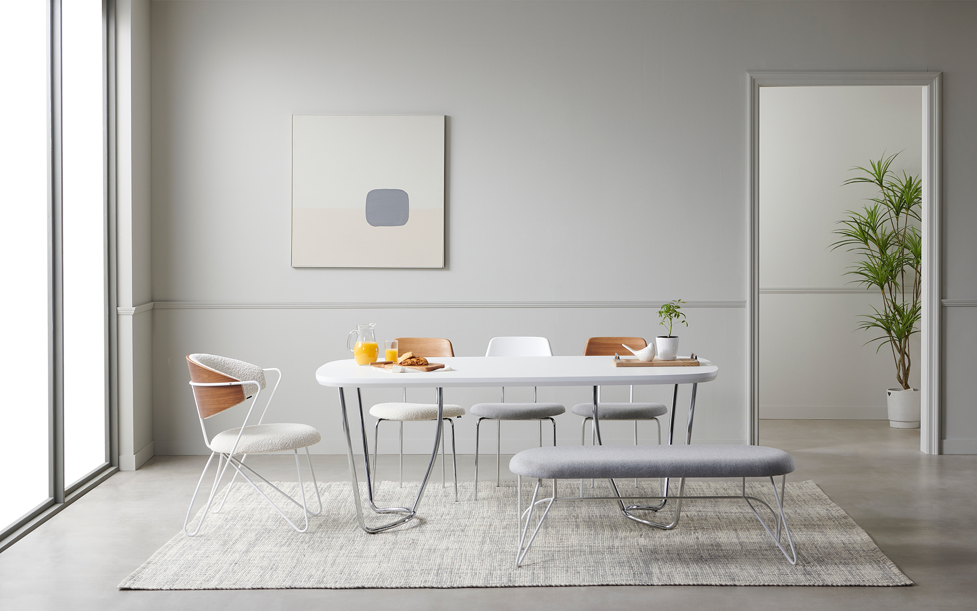 부드럽게 감싸주는 커브 등받이와 금속 프레임의 디테일이 더해진 루프 다이닝체어는