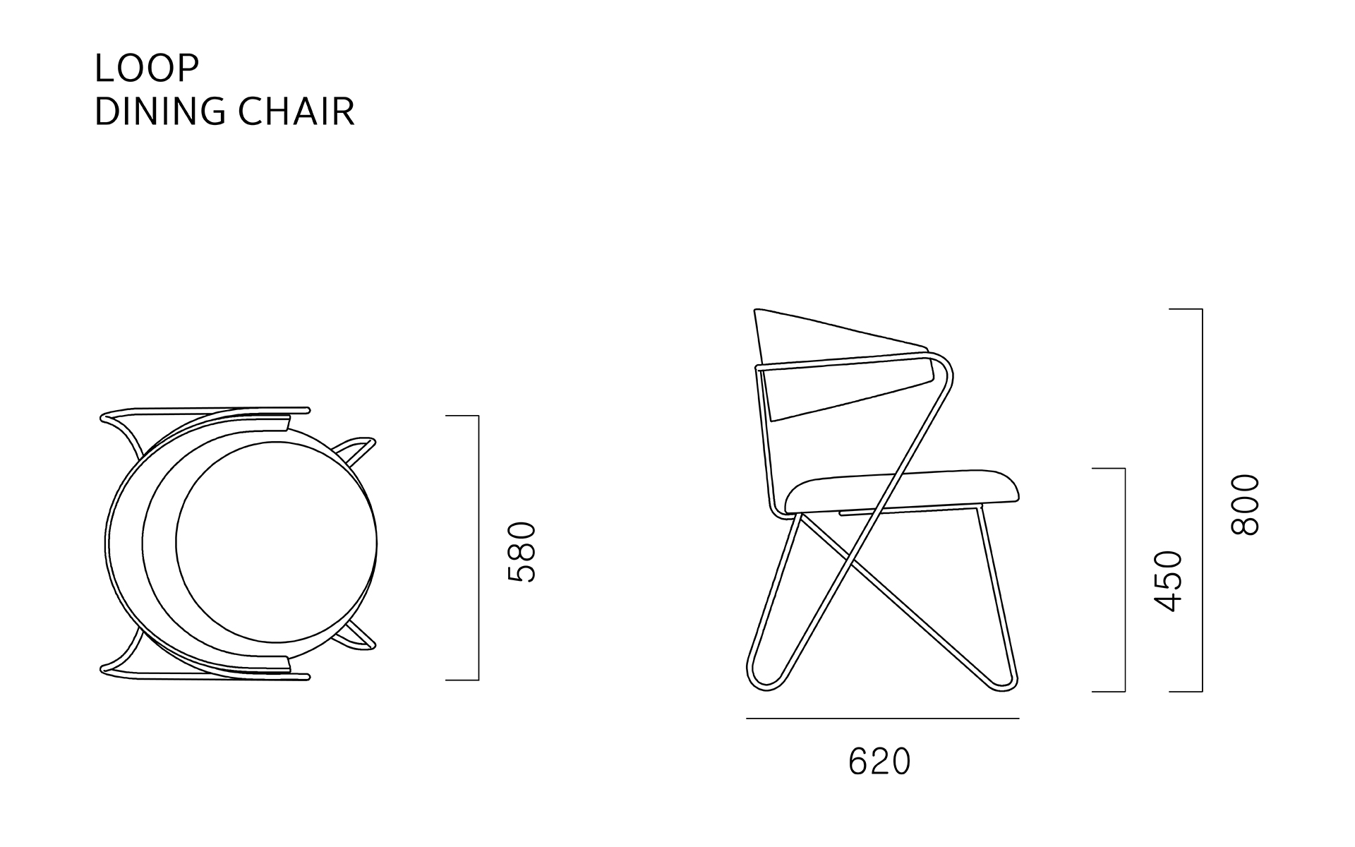 부드럽게 감싸주는 커브 등받이와 금속 프레임의 디테일이 더해진 루프 다이닝체어는 편안함과 디자인을 모두 만족시키는 제품으로 세련된 공간을 완성시킵니다.
