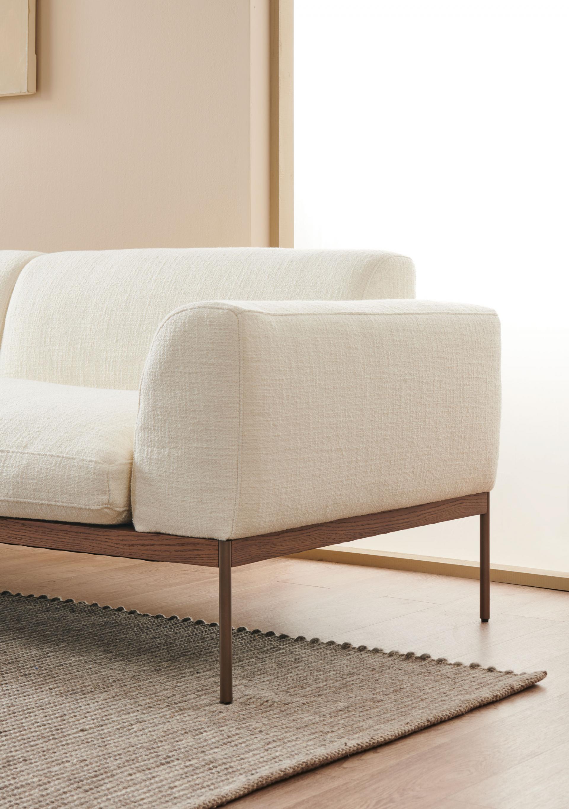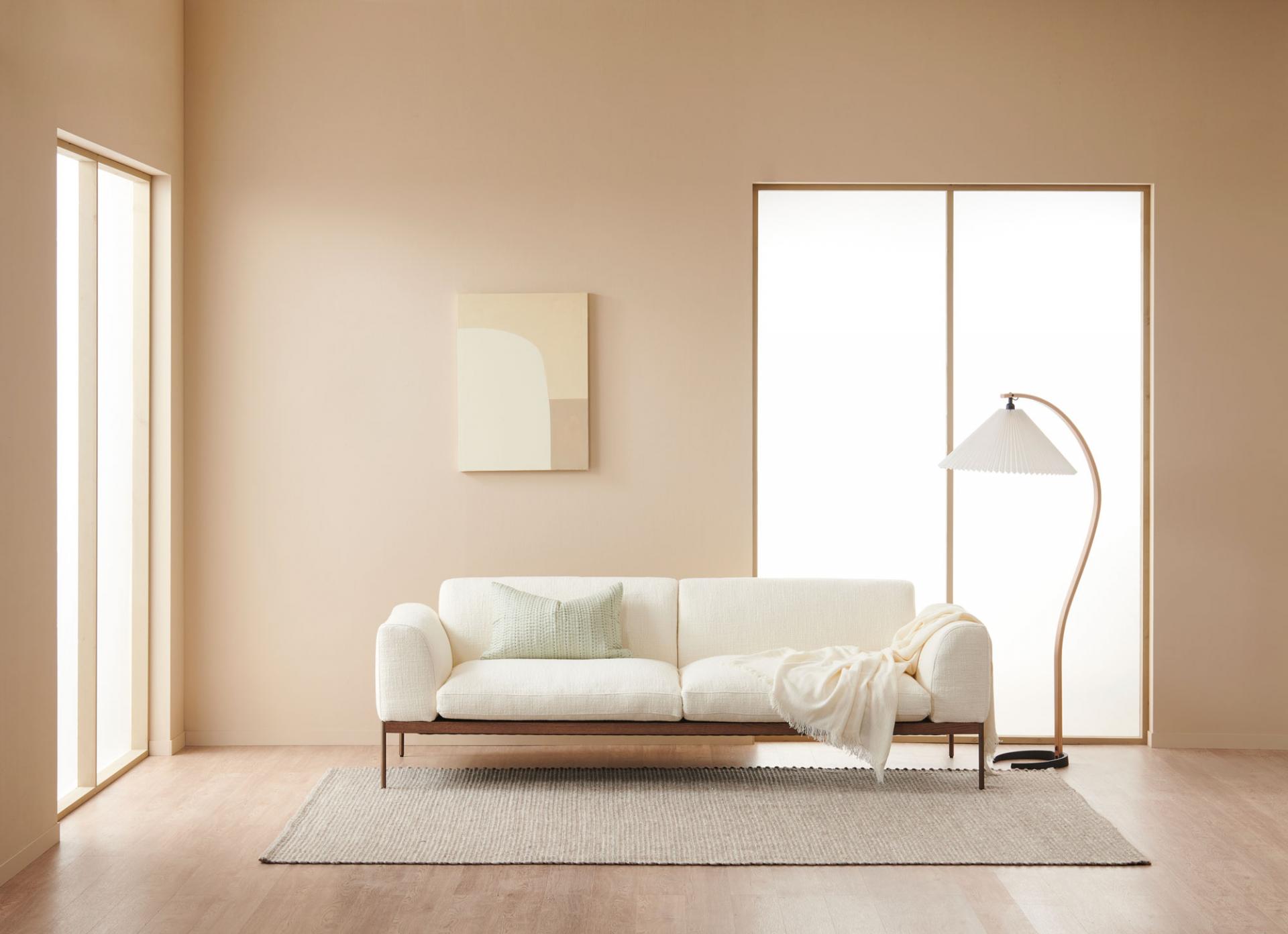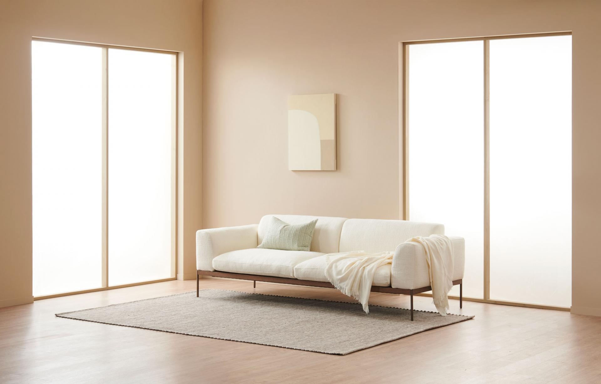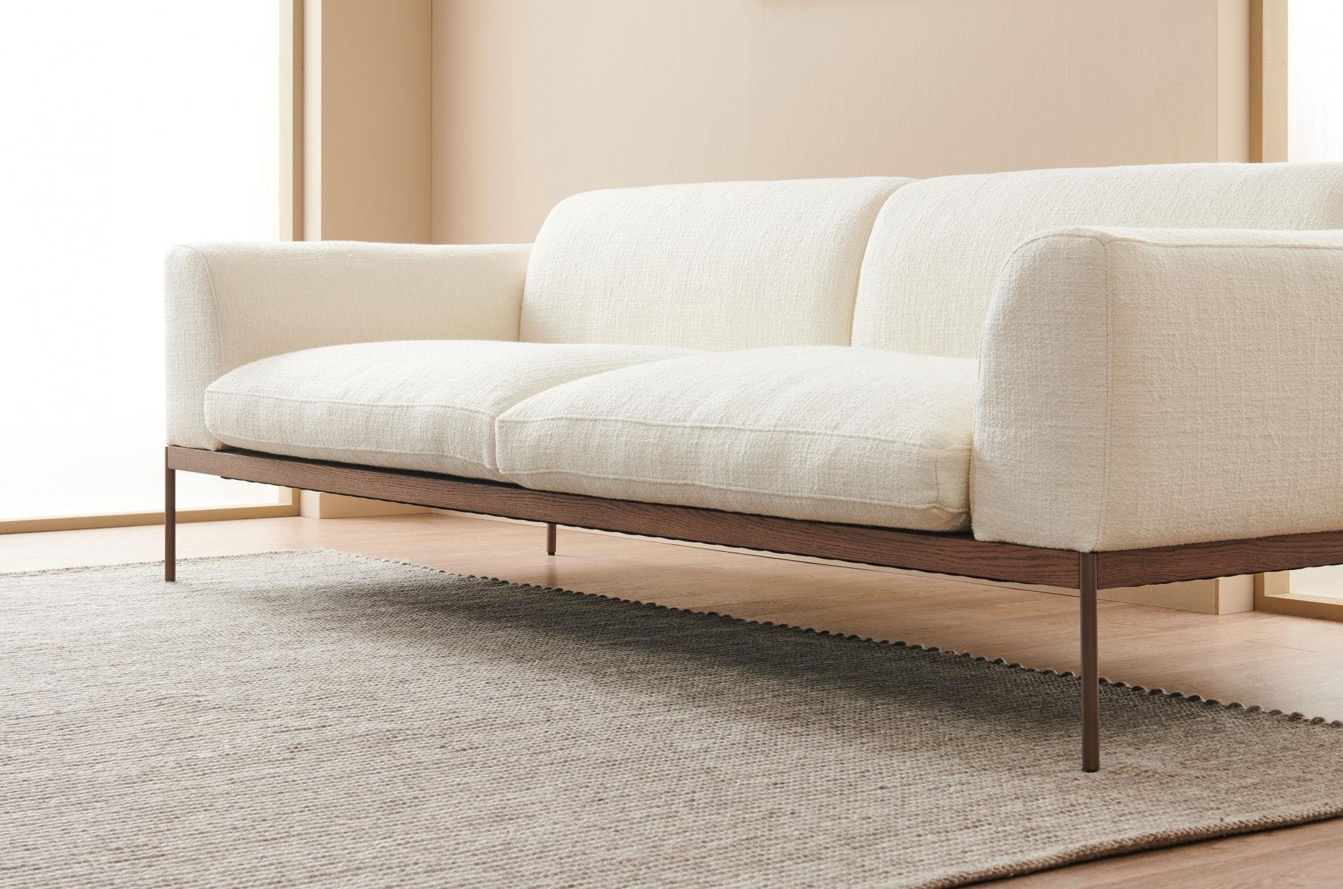 디파트먼트 소파는 카메론 포고가 세련된 미드센추리 감성을 현대적으로 재해석한 디자인으로, 원목 하부 지지대와 슬림한 강철 다리가 만들어내는 가볍고 우아한 실루엣이 특징입니다.