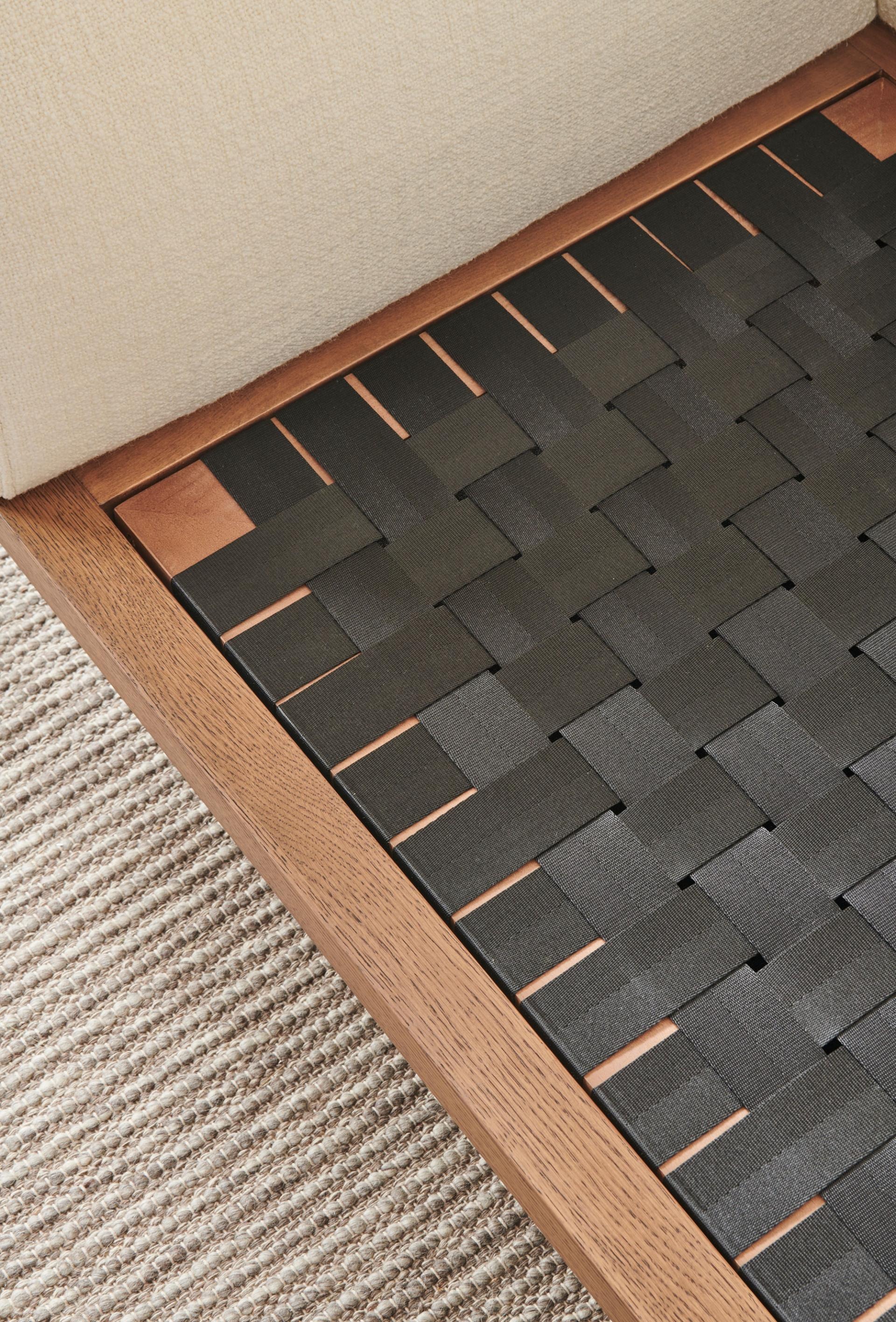 방석은 고밀도 폼과 깃털/파이버 클라딩을 사용해 포근하면서도 안정적인 착석감을 제공하며, 웨빙벨트 구조는 무게를 균일하게 지탱해 장시간 사용에도 편안함을 유지합니다.