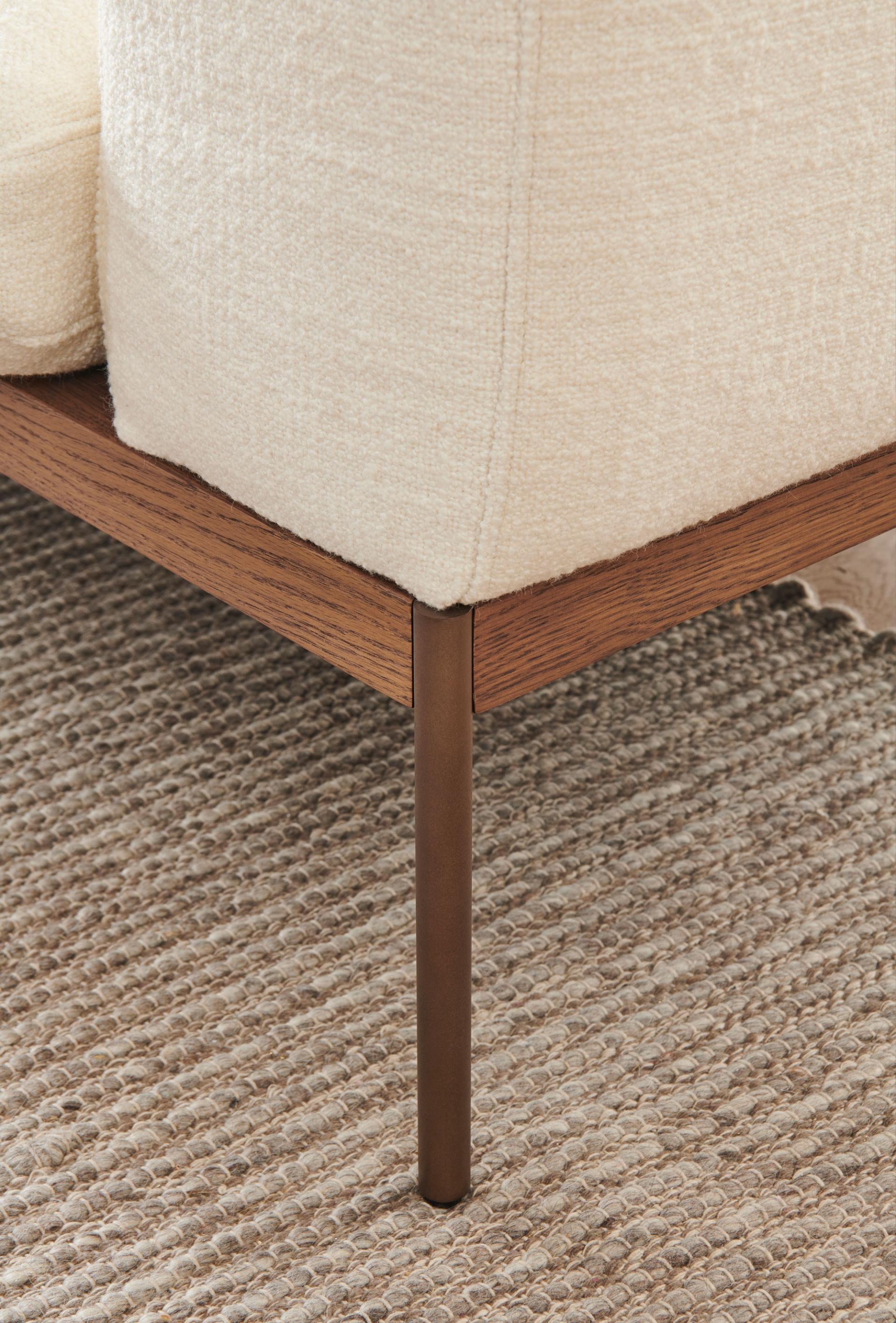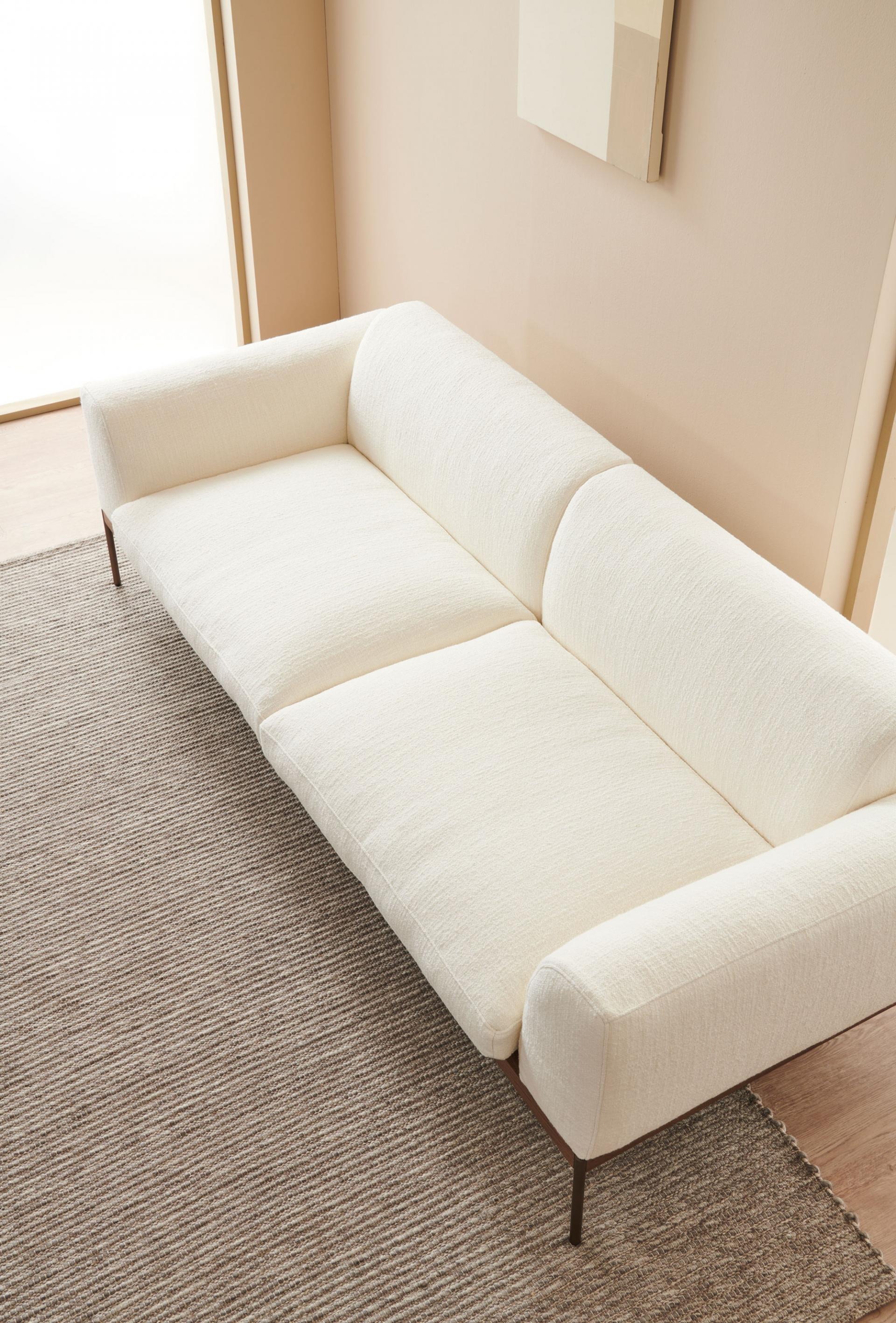 부드럽게 라운딩된 업홀스터리 시트와 깃털 랩으로 감싸진 쿠션은 풍성한 착석감을 제공하되,