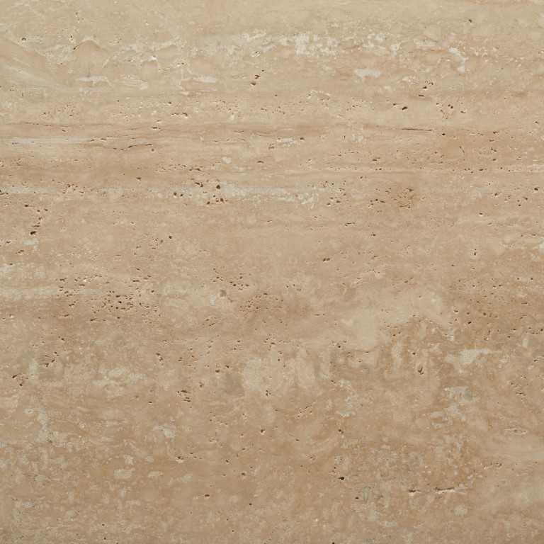 상판은 트래버틴이며 베이스는 솔리드 오크 제공되어 고급스러운 재질 조합을 구현합니다.