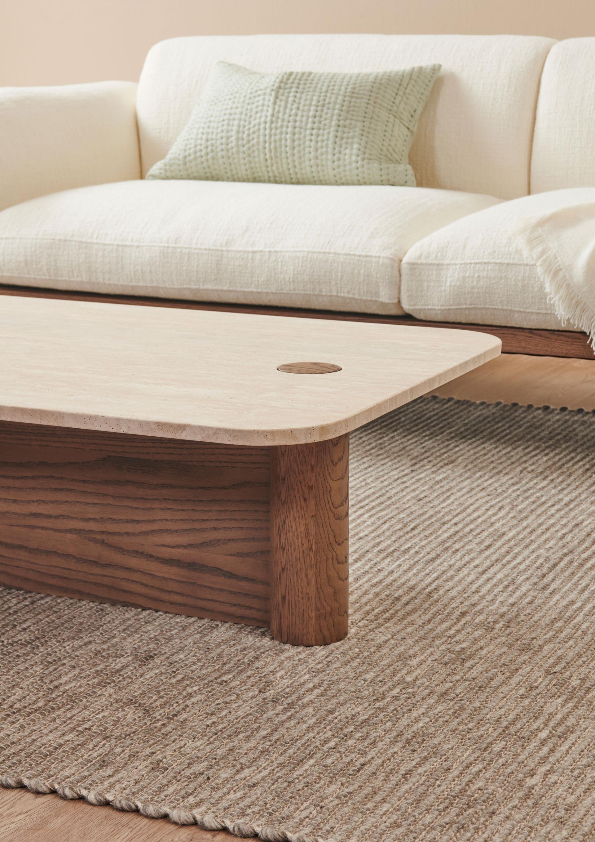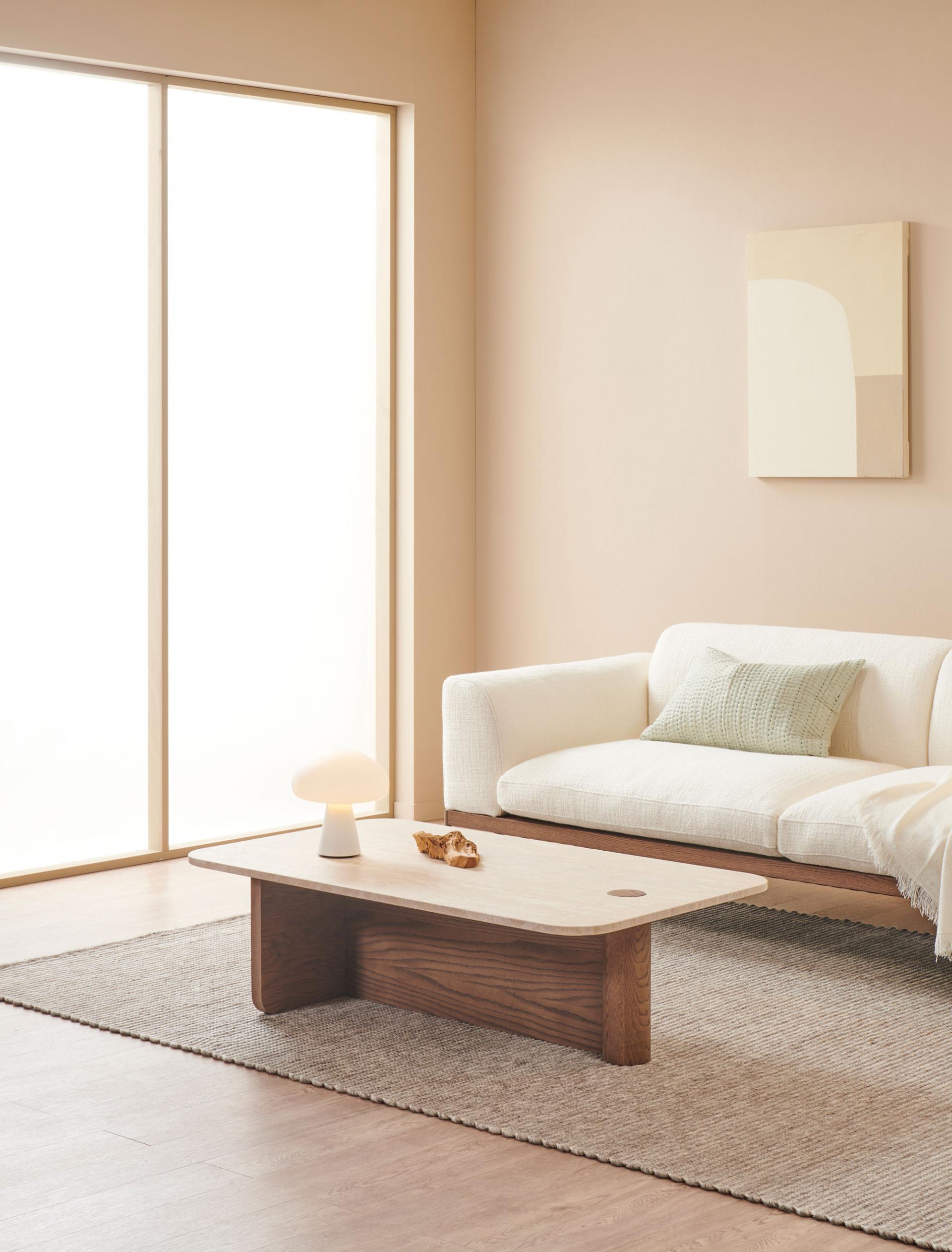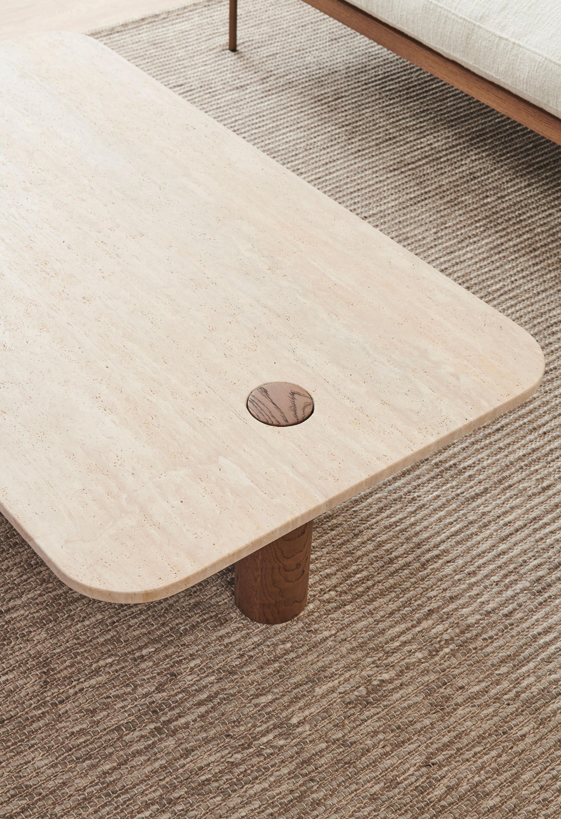 트래버틴 상판과 우드 베이스 조합으로 완성된 이 테이블은, 원형과 직사각형 두 가지 형태로 제공되어 어떤 공간에서도 조형적인 포인트가 됩니다.