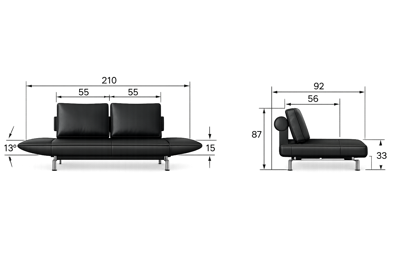 양쪽에 적용된 3단계 각도 조절 시스템을 통해 앉기, 라운지, 리클라이닝까지 다양한 자세로 편안하게 사용할 수 있습니다.